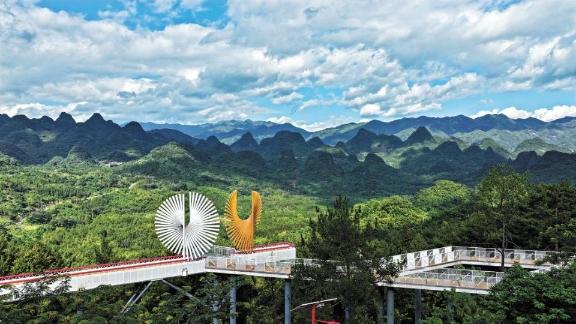 7月中旬,记者从广州一路向北,寻访北江。过清远市区不久,出一段隧洞后,自然景观陡然一变,特别是从英德到阳山沿线,山变得挺拔,轮廓变得硬朗,质地从黄土变为灰白色的岩体。峰丛、峰林地貌扑面而来,错落有致,与田园、河流相互映衬,绘成十里英西峰林。车辆继续向前,抵达广东第一个国家石漠公园——连南万山朝王国家石漠公园,只见万峰如石锥刺破云霭,又如元宝镶嵌在大地。裸岩如鳞,或如古兽脊背,或如刀劈悬崖,风光如画。