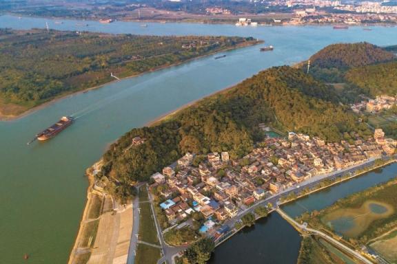 “你看,双江抱流,三山围峙。江口咀那山岗,就是秦汉万人城遗址。任嚣与赵佗设置的洭浦关就在这一带。”英德市委宣传部的徐英豪带着记者泛舟,来到连江与北江交汇的地方。江面水平如镜,悠远辽阔,两岸青山如黛,京广高铁跨江呼啸而过,古今岁月在这儿叠成一幅画。