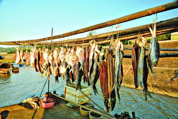 离开北江大堤,记者溯江而上来到浈阳峡,只见江上渔船、货船、客船往来如梭。能运载逾千吨级的货船一排排停靠在连江与北江交汇处的江心。连江口镇宣传委员苏晓明介绍,那是等待运载英石等矿藏的货轮。2023年,历时8年建设,北江航道扩能升级项目完成,1000吨级船舶可畅行佛山三水区河口至韶关浈江区通天塔的北江段,粤北与沿海港口间越发车水马龙。