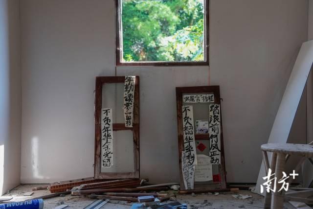 在欢欢养父所在的房间里,一扇老窗户放在其中,没有人动。这是爱心人士特意将其保留的。窗户上,贴着欢欢之前用笔记本的纸张粘合而成的对联,上面用毛笔写着:“不负年华余光留,少年勤读寒窗书。”窗上还贴了一张纸条,是几句欢欢摘抄的话,其中一句是:“万物皆有裂痕,那是光照进来的地方。”