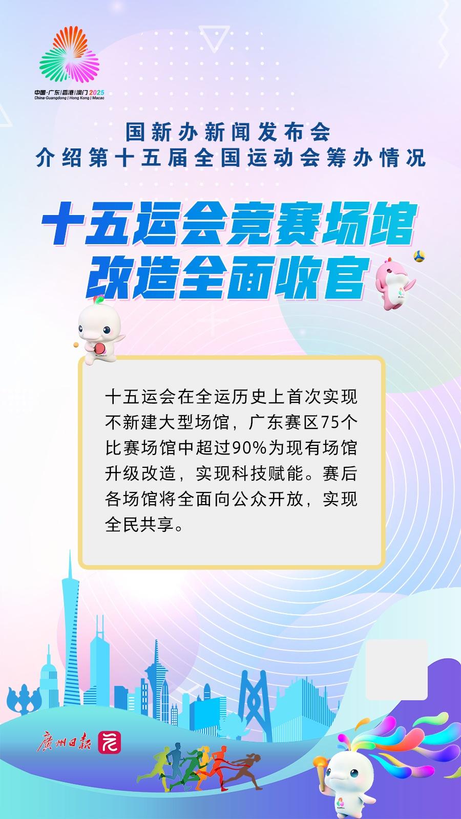 第十五届全国运动会将于2025年11月9日至21日在广东、香港、澳门联合举办,这是全运会历史上首次由粤港澳三地共同承办。赛事设34个竞体大项和23个群众赛事活动,预计共有超过2.6万名运动员参赛。筹备工作坚持“绿色、共享、开放、廉洁”理念,90%以上的场馆通过改造升级完成,未新建大型场馆和全运村,有效降低成本。开闭幕式将分别在广州和深圳举行,融合岭南文化、港澳特色与现代科技,打造体育与艺术交融的视觉盛宴。