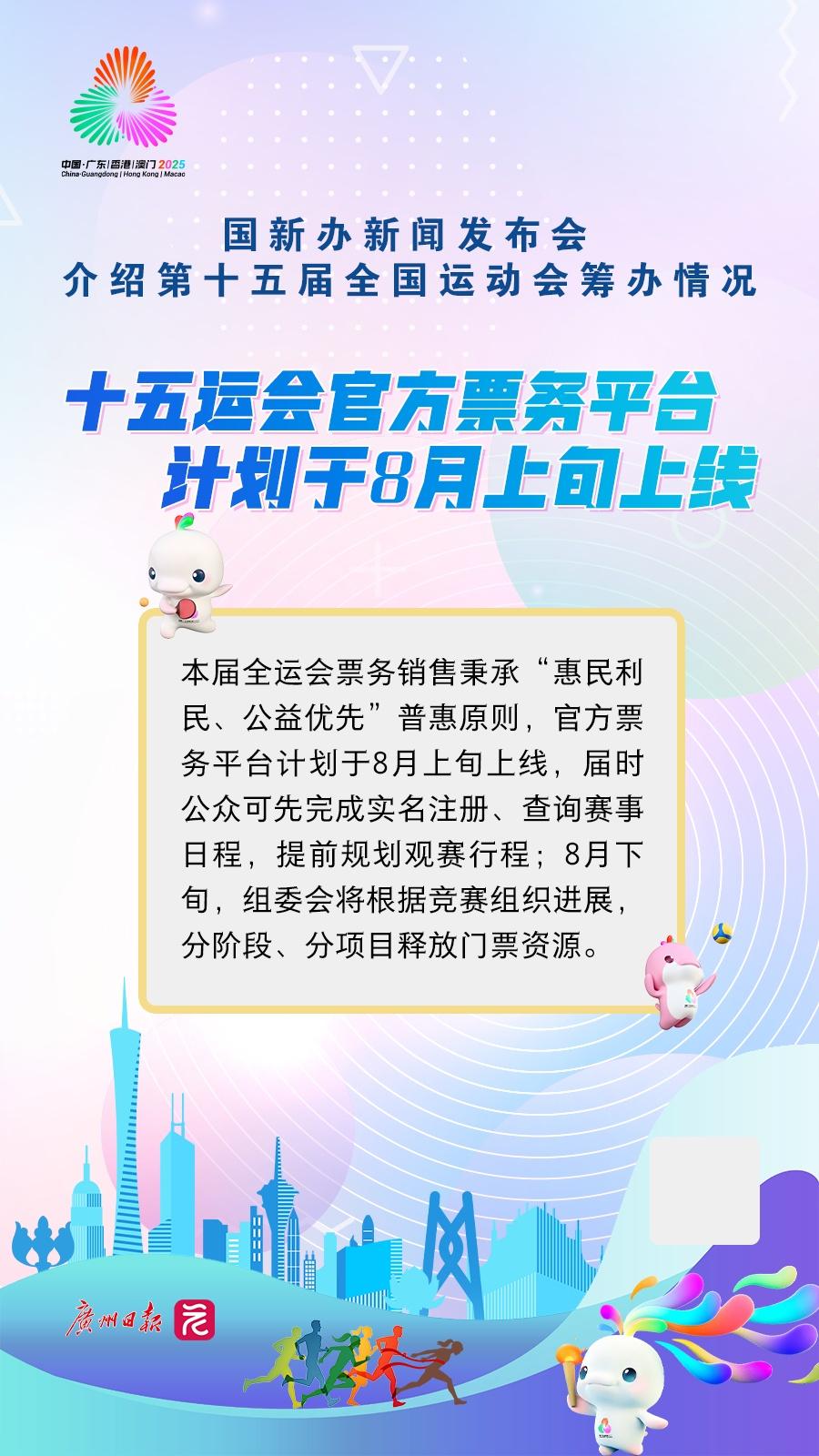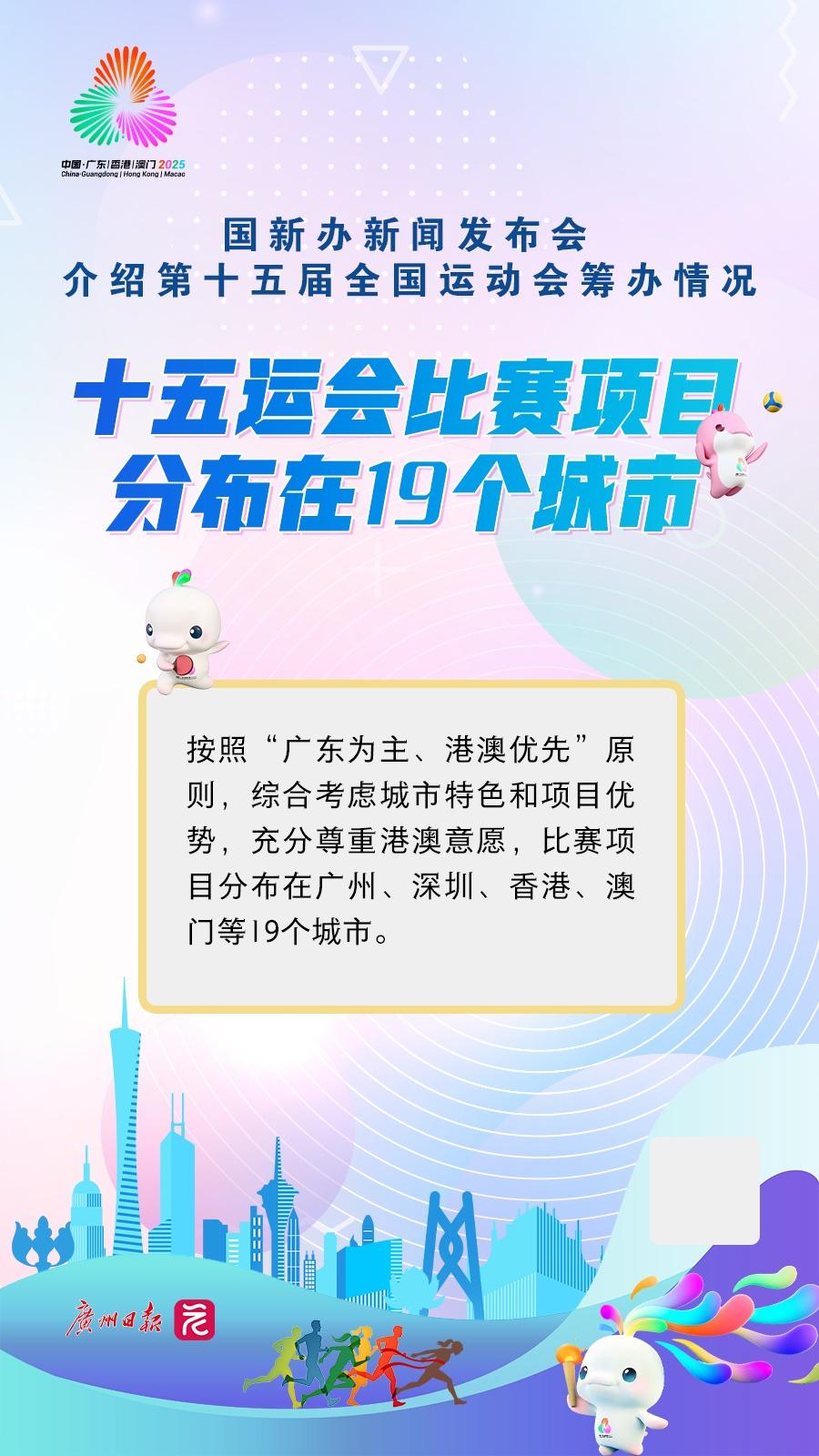 2025年7月25日下午3时,国新办举行新闻发布会,请国家体育总局副局长佟立新,第十五届全国运动会组织委员会副主任、广东省委常委王曦,第十五届全国运动会组织委员会副主任、香港特别行政区政府政务司司长陈国基,第十五届全国运动会组织委员会副主任、澳门特别行政区政府社会文化司司长柯岚介绍第十五届全国运动会筹办情况,并答记者问。