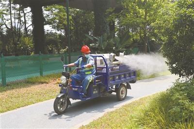 工作人员正在进行药物喷洒。广州日报全媒体记者杨耀烨 通讯员李剑锋 摄