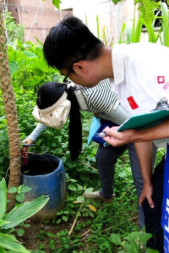 顶着烈日炎炎,疾控中心工作人员和村里的工作人员、志愿者带着手电筒、手写板、标签纸等,深入背街小巷、屋里屋外、学校工厂周边等地,监测伊蚊幼虫密度,检查记录室内外积水容器及其幼虫孳生情况,精准查找积水,统计好各种数据。他们的工作常态为市民筑牢蚊媒传染病防控安全屏障。