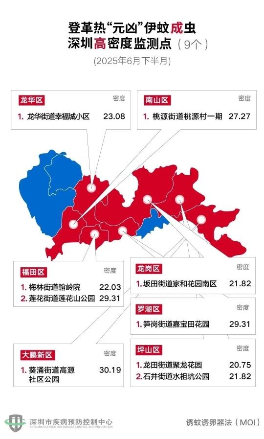 近期,深圳降雨频繁、气温较高,蚊媒孳生环境显著增多,需工地、小区、公园、学校、工业园区等相关场所共同做好防范措施:加强环境卫生整治,定期组织清理绿化带、垃圾点、下水道等蚊虫易孳生场所;公共区域定期开展药物消杀,投放灭蚊药,尤其是在蚊虫密度较高时期,加大蚊虫消杀力度,将蚊虫密度控制在安全水平。
