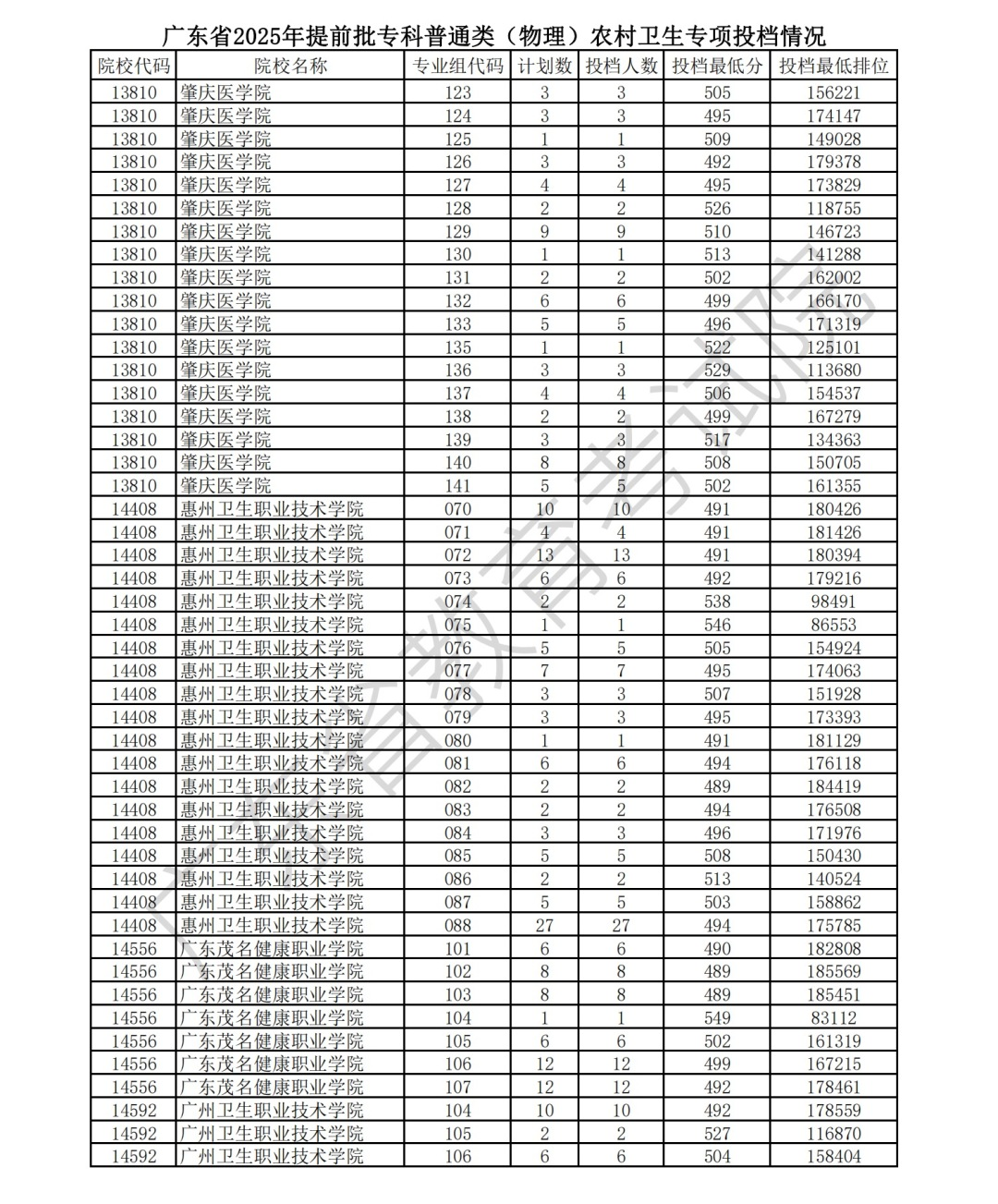 8月3日,广东省2025年普通高考提前批专科定向培养军士征集志愿及提前批专科农村卫生专项已完成投档工作。