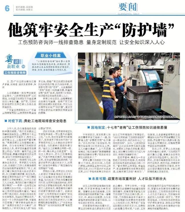而政策和市场的双重利好,更让这份新职业扎根在养分充足的土壤中。老罗分析称,一方面国家对生命健康安全的重视程度持续提升,政策层面不断加大对工伤预防工作的支持力度;另一方面,工伤保险基金中不高于上一年征缴额3%的费用可用来投入工伤预防工作,而目前广东省实际提取比例尚不足1%,经费投入的增量空间可观。“目前,工伤预防咨询师行业处于刚刚起步阶段,随着社会发展对安全需求的日益增长,工伤预防咨询师专业人才队伍不断壮大,工伤保险基金的投入也将进一步扩大。”老罗笃定地说,工伤预防咨询师将在守护劳动者安全、推动企业可持续发展、促进社会和谐稳定中扮演越来越重要的角色。