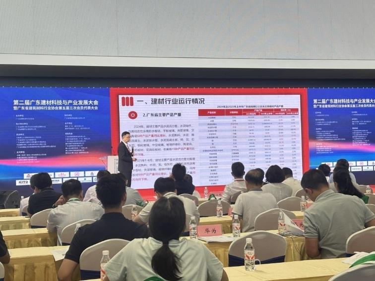 本次大会以“好材料适配好房子,AI赋能建材新未来”为主题,聚焦建材行业的高质量发展,通过院士、专家学者的专题报告、主题演讲等,展示了广东建材产业在科技创新、绿色低碳转型和数智化发展等方面的积极探索和发展成果。