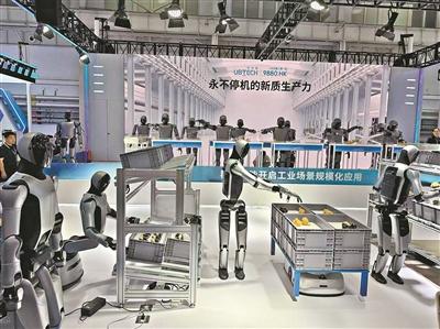 优必选在现场演示了人形机器人群体智能技术,这一技术能够调动多台机器人,完成协同搬运、分拣全流程作业;优必选自主研发的家庭智能机器人AI悟空具备数字生命内核,在国内首次亮相。