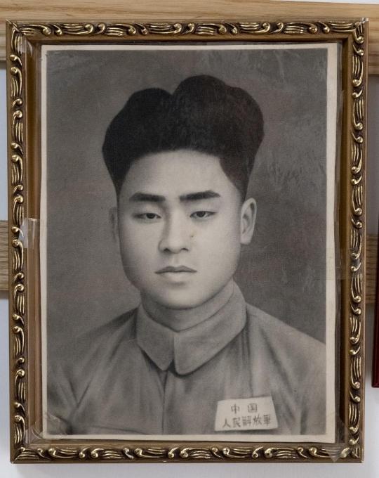 走进叶发家中,客厅的一面墙上几乎挂满了老照片,其中不乏他身着戎装的照片。回望不满13岁时投身抗战的烽火岁月,坐在桌旁的叶老脊背笔挺,沉默了一会儿才开口讲述。