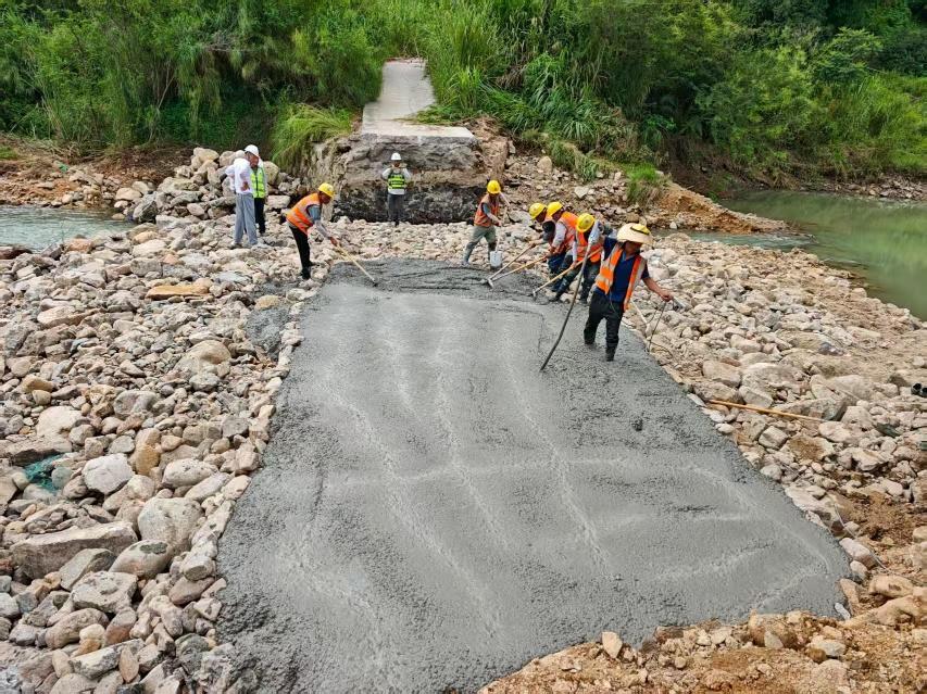 张明明介绍,中国水电四局积极组织项目部技术力量,为漫水桥的重建制定切实可行的施工方案。“方案确定后,我们的技术人员和工人师傅随即进入现场着手进行漫水桥的重建工作。我们也将利用技术优势、资源优势,响应‘百千万工程’战略,体现央企的社会责任和担当。”