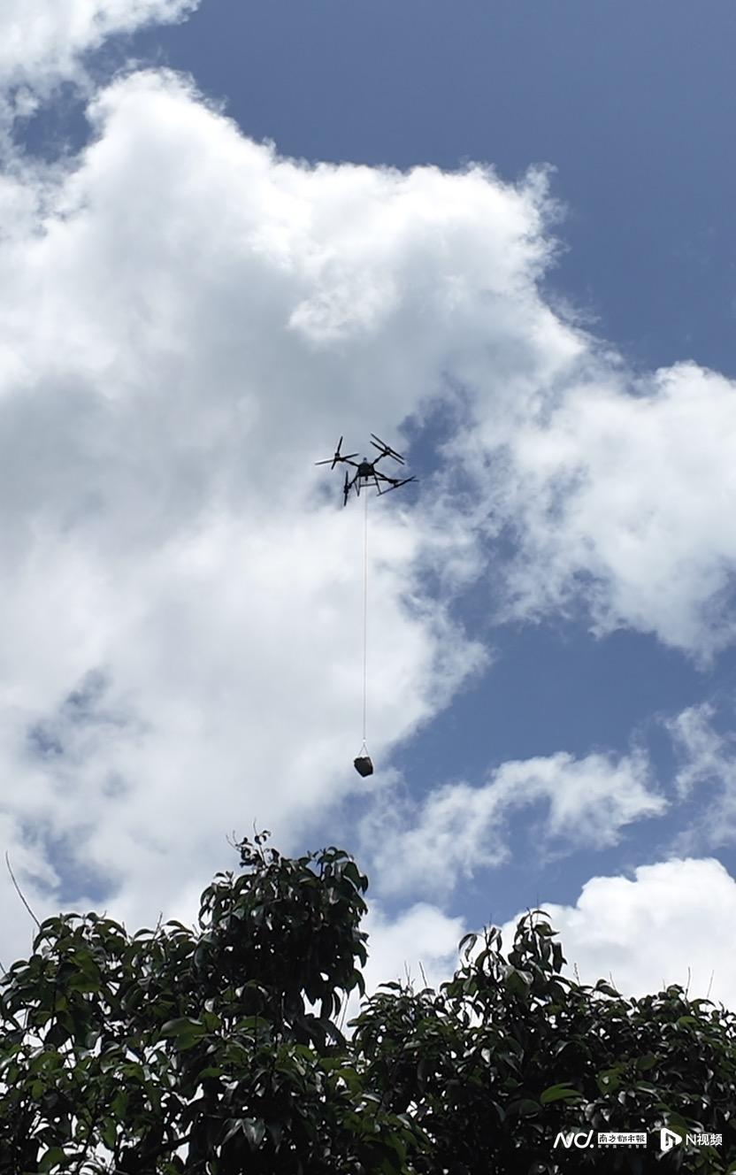 7日、8日,连续两日,南方电网广东广州从化供电局联合南网产业发展集团通航公司,调派多台无人机进场转运。无人机的起降点设置在距离断桥两端不远处的空地,村民们从山上运下荔枝后,无人机立即开始作业,在两岸来回飞行。