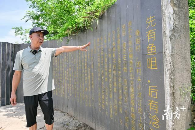 廖志其摸着鱼咀村古码头石碑,细数着鱼咀村的历史。