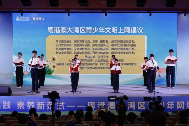 粤港澳三地的大中小学生代表还共同宣读了文明上网倡议,承诺“做网络强国的建设者、网络正能量的传播者、网络秩序的维护者、网络安全的践行者”。
