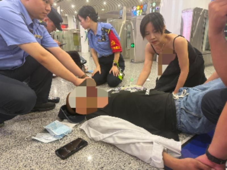 A21与A4检票口相隔数百米,一边是即将截止的检票时间和身边的儿女,一边是素不相识的危急生命。短暂的挣扎后,医护人员的本能让她做出抉择——将背包塞给儿子,留下一句“等我回来”,便转身冲入人潮,向着A4检票口狂奔。
