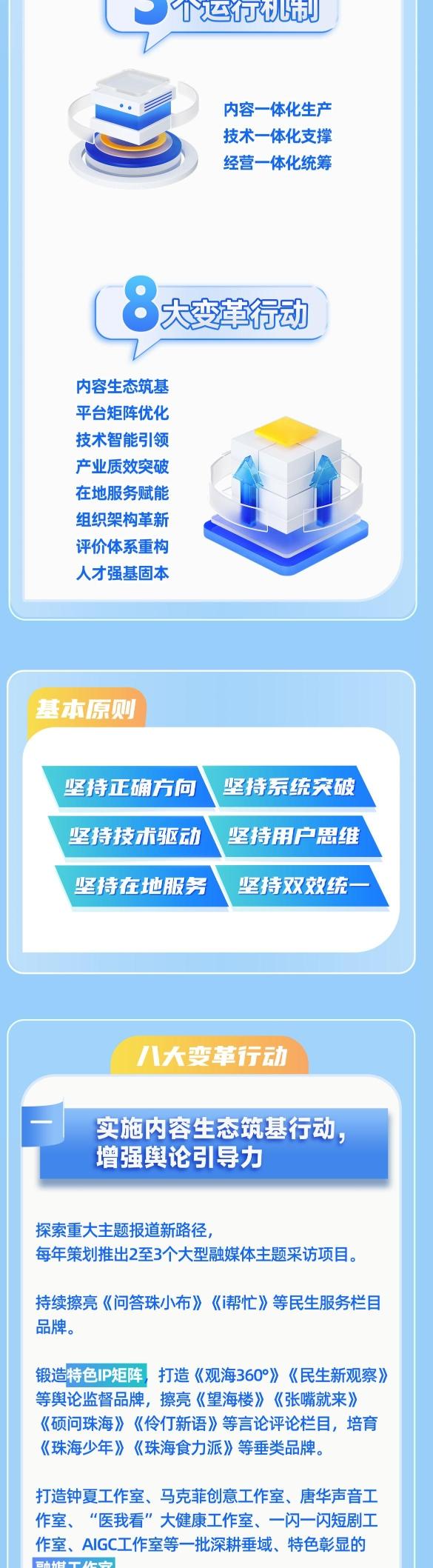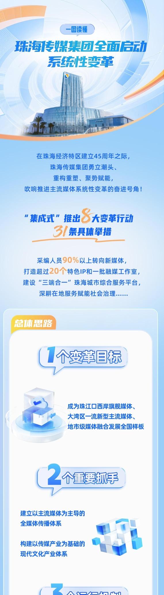 重构生态,重塑优势,深耕本地,智领未来。8月25日,珠海传媒集团全面启动系统性变革,推出8大变革行动、31项改革举措,采编人员90%以上转向新媒体,打造超过20个特色IP和一批融媒工作室,建设“三端合一”珠海城市综合服务平台,深耕在地服务赋能社会治理,以更高站位、更广视野、更强担当回应时代命题,为珠海高质量发展奏响舆论强音。