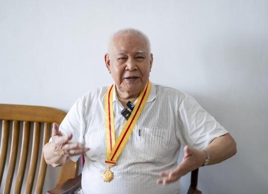 初见王森爷爷时,他端坐于木桌前,胸前的勋章在柔和的光线下格外醒目。这位 97 岁的老人,是广东人民抗日游击队东江纵队的老战士,得知我们要来采访,他早早便将中国人民抗日战争胜利70周年纪念章郑重佩戴好,这枚勋章不仅代表国家对英雄的崇高敬意,更凝结着一段烽火岁月的厚重历史。