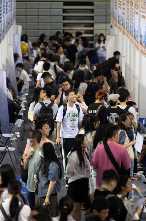 “百万英才汇南粤”2025年新兴产业和未来产业专题招聘活动现场人头攒动。(资料图片)
