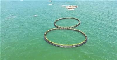 惠来神泉港海域的碧波之上,22个周长96米的圆形重力式网箱如蓝色巨环漂浮海中。这些科技感十足的养殖平台不仅能抵御强台风,还可实现全天候水下监测和云数据处理。