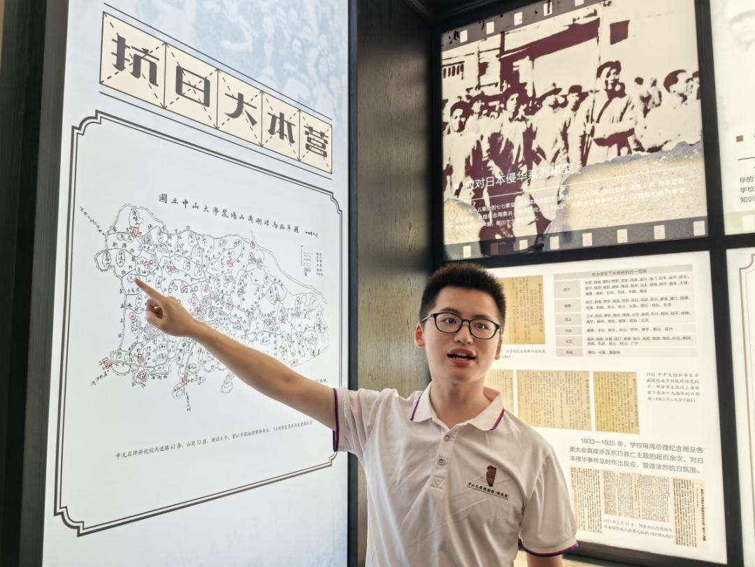 “这些抗日先锋队队员跟我们年纪也差不多,好多甚至更年轻一些……”“你看,他们说‘青年是急先锋’‘一致奋起,个个都做成抗战的英勇斗士’,这些话鼓舞了当时的青年学生走上抗日救国之路……”纪念抗战胜利80周年之际,“废墟中的广州 抗战中的中大”专题展上,学子围在军事大露营老照片前讨论着。