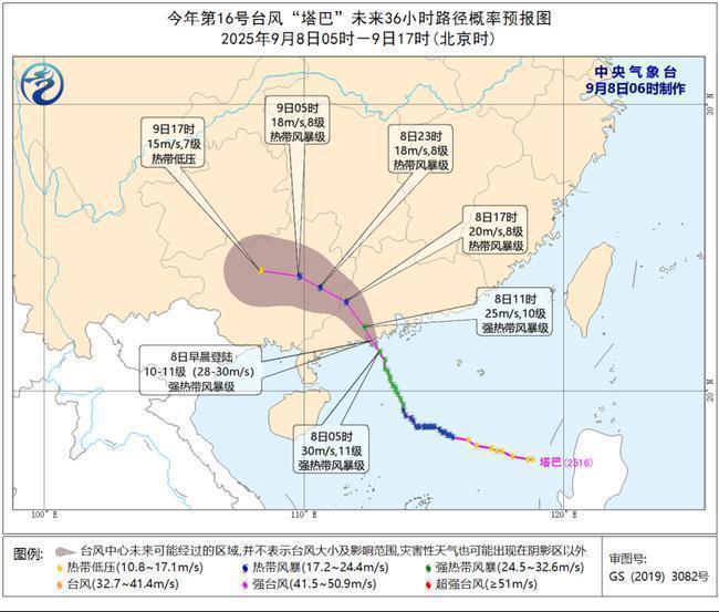 “塔巴”将在广东台山至阳江一带沿海登陆
