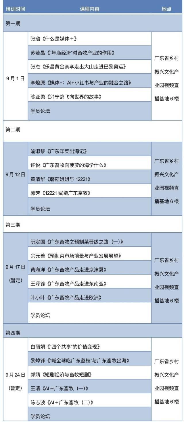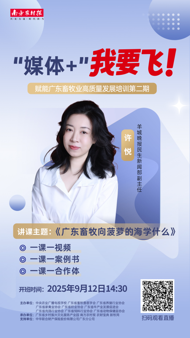 “媒体+”广东畜牧业高质量发展培训计划组织开展总共四期、20个课时的系列专题培训,内容围绕理念开篇、跨界借鉴、案例穿插、话题创新、赛道延伸、媒介融合、价值升华、总结互动八大核心主题,后续还有三期内容同样看点满满!让“媒体+”为畜牧产业高质量发展插上腾飞的翅膀,助力广东畜牧走向全国、飞向全球!