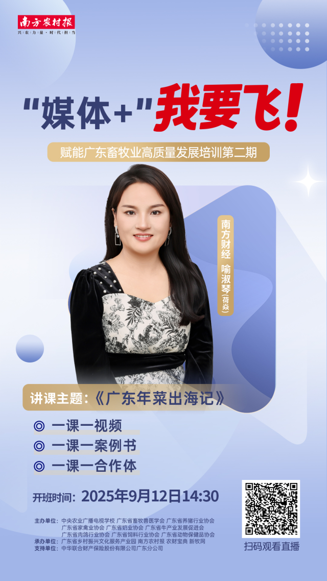近年来,广东以“节庆+美食文化”为载体,打造可传播的IP与记忆点,着力推动畜牧产品走向世界。南方财经大湾区新闻部喻淑琴将带来《广东年菜出海记》的主题分享,为畜牧产品出海提供新建议新思路。