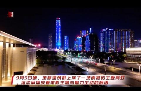在深圳,楼宇群屏次第闪烁,平安金融中心、汉国中心大厦、华润大厦等地标建筑亮灯,在夜空深情书写电影的片名。