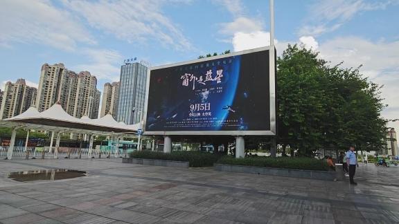 在清远,《窗外是蓝星》预告片亮相顺盈时代广场大屏,在城市中心撑起另一片蔚蓝夜空。