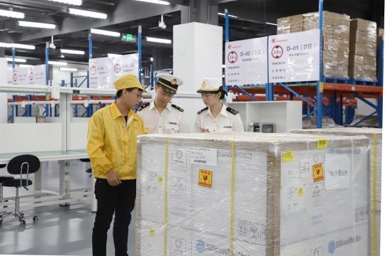 拱北海关所属中山海关关员保税仓库首批入仓货物进行监管。