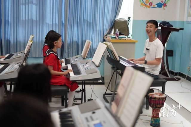 讲台下,广东援疆音乐老师潘康友也笑了。这趟进疆,他特意带上自家晒的荔枝干,让孩子们尝一尝岭南的甜。