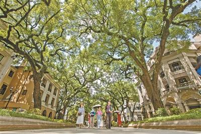 在沙面岛,古树名木与欧陆风情建筑相映成趣。广州日报全媒体记者杨耀烨 摄