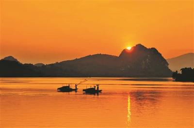 “卧佛含丹”是肇庆星湖独有的天文地理奇观,也是我国唯一一处在城市中心即可观测到且佛形极其相似的天象奇观。每当秋分前后,落日熔金之时,夕阳徐徐西沉,恰如一枚金丹精准落入一尊“卧佛”口中,形神毕现,宛如天成。