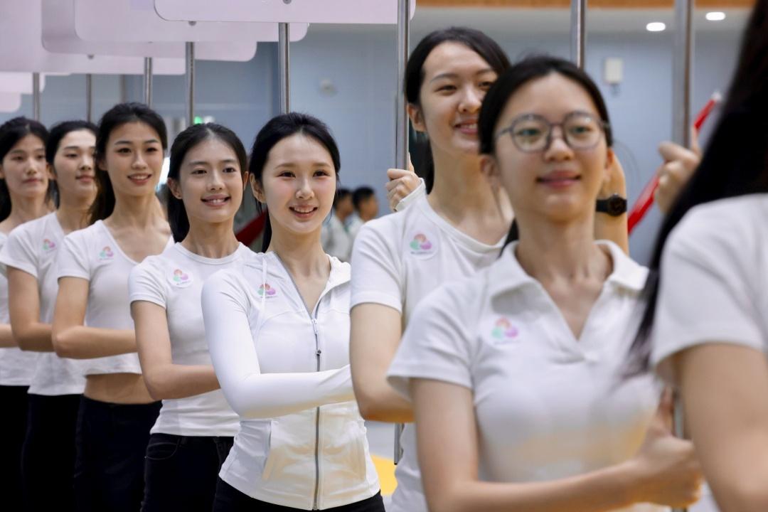 仪式导演王聪表示,“一个八拍动作反复十几遍是常态,尤其在高温天气下,体能和专注力都面临极大考验。”不少学生在宿舍加练动作、对镜调整微笑,甚至逐帧复盘视频,精益求精。广州民航职业技术学院引导员吴佳聪表示,挺拔的身姿背后是责任,稳定的步速底下是默契,而持续的微笑本身就是一种力量。