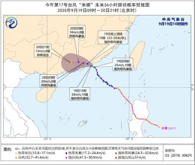 中国天气网讯 中央气象台9月19日10时发布台风黄色预警: