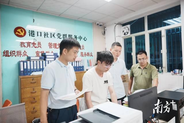 23日晚上9时,街上的商户基本都已关门,港口社区党群服务中心内仍灯火通明。