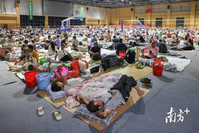 当晚,北京理工大学(珠海)的体育馆内,约2000名建筑工友被妥善安置于此。他们主要来自周边在建工地,年龄多在30至50岁之间,其中不少人是来自西南地区的外来务工者。