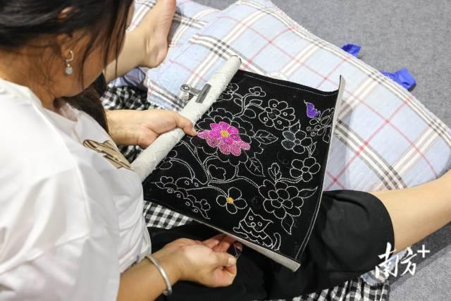 馆内,一些工人躺在铺上休息,刷着短视频;另一些则三三两两聚在一起低声交谈。特别引人注目的是一些少数民族女工正专心做着刺绣,她们说,“水、盒饭这些都准备得很足,住着挺安心”。