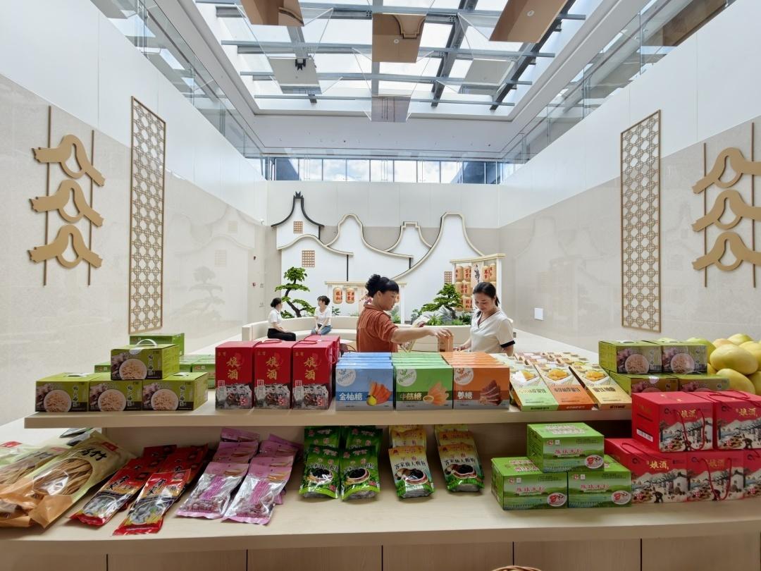 作为广东交通集团打造的又一个“交农文旅商”融合的驿站,水车服务区不仅提供吃、喝、休、购的全方位服务,更通过文化互动和特色产品展示,让每位旅客在旅途中邂逅客潮文化,让服务区成为展示文化、展销特产、助力振兴的窗口。