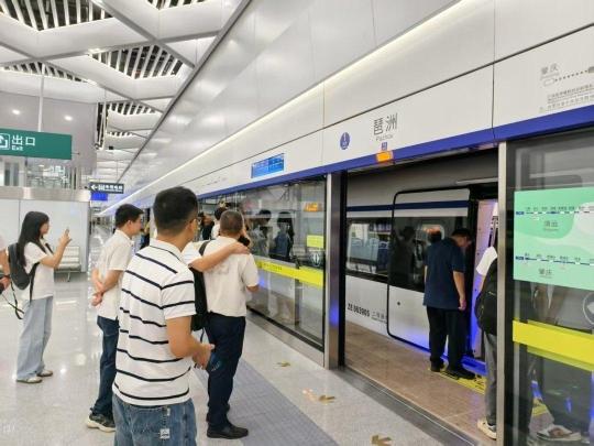 中午12点半,乘客成小姐拉着行李在琶洲出站。“我是刚刚好遇到城际新线开通,很方便,正好坐过来了。”