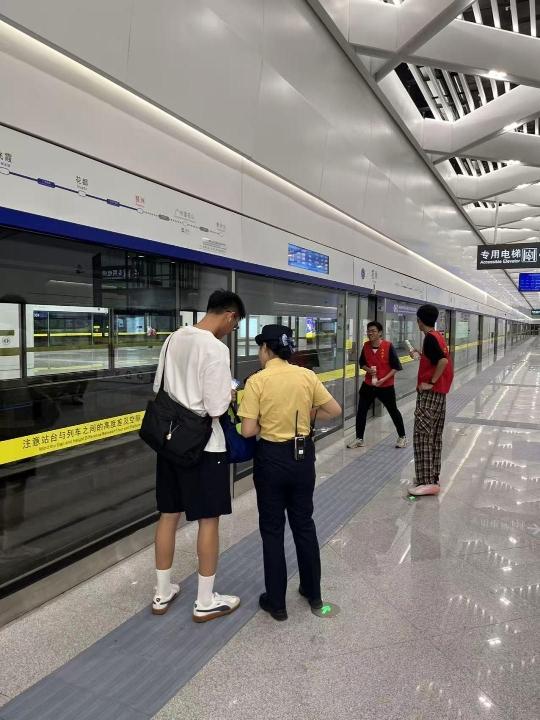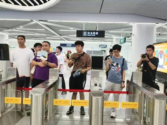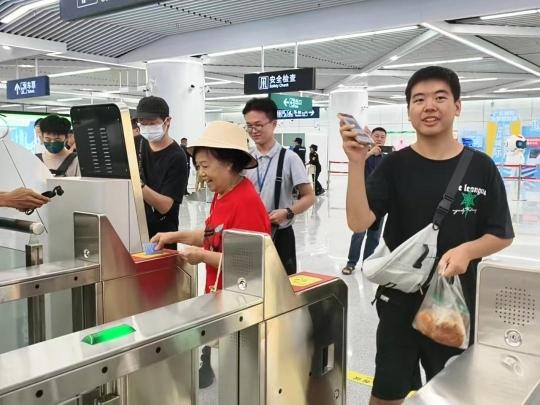 地铁+城际迷徐先生一马当先,用广州地铁APP的城际码刷开了闸机。他表示,自己11点钟就从地铁琶洲站出站走过来城际的站厅等搭头班车。开通首日,他想体验从琶洲到白云机场的快捷出行。“广州的交通出行越来越方便,大湾区城际说走就走。早上在琶洲出发,中午到东莞吃烧鹅濑,傍晚在惠州西湖看落日。”