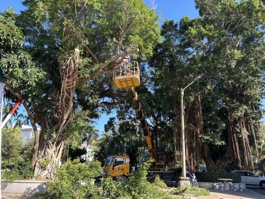 树木医生在深圳市大鹏新区给龙眼古树进行高空修枝