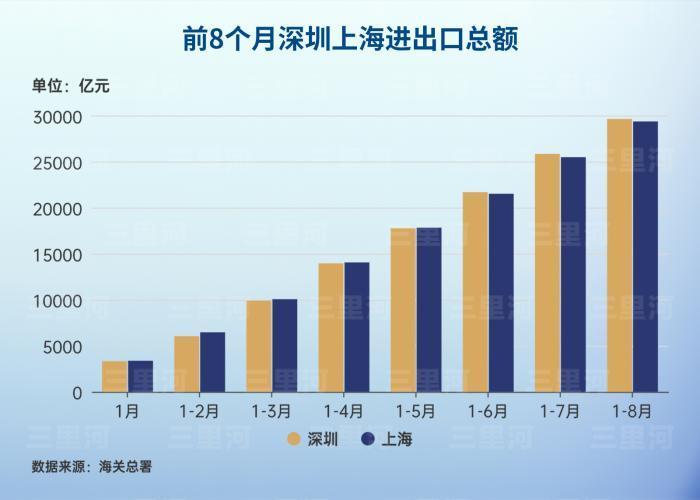 深圳海关最新数据显示,今年1—8月,深圳进出口总额达2.96万亿元,在全国主要外贸城市中持续领跑,并以271.81亿元的优势领先上海。