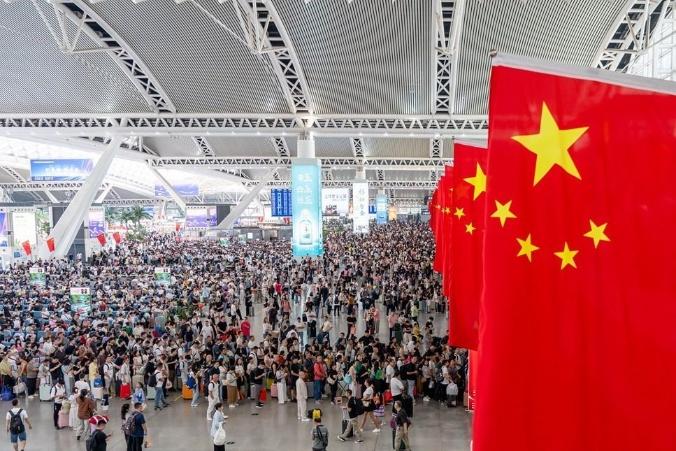 今年国庆假期恰逢中秋节,“双节”叠加下客流大幅增加。国庆节当天,国铁广州局迎来客流最高峰,预计发送旅客355万人次,较去年同期增加38.5万人次,增幅达12.2%,较今年五一创下的346.9万人次历史纪录多出8.1万人次,刷新了客流历史单日新高。