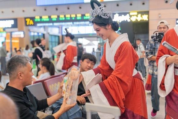 为庆祝中华人民共和国成立76周年,广州南站、深圳北站、长沙南站等车站组织开展庆祝国庆快闪活动,组织铁路文艺骨干表演情景剧、小提琴演奏、歌舞表演等节目,邀请旅客朋友合唱《歌唱祖国》《我和我的祖国》,以及参与现场答题互动等活动,共同祝福祖国繁荣昌盛!