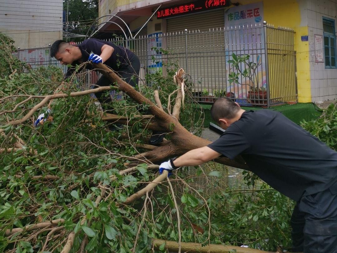 “同志们,我们加把劲把这段路清理完。”10月6日,到达受灾路面后,湛江边检站民警立即开始分头行动。受台风期间强风暴雨影响,道路上遍布树枝、垃圾与杂物,给灾后生产生活造成不便,也给人民群众生命财产安全带来隐患。