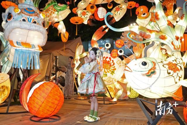 佛山彩灯织就中秋之夜光影流转的画卷。