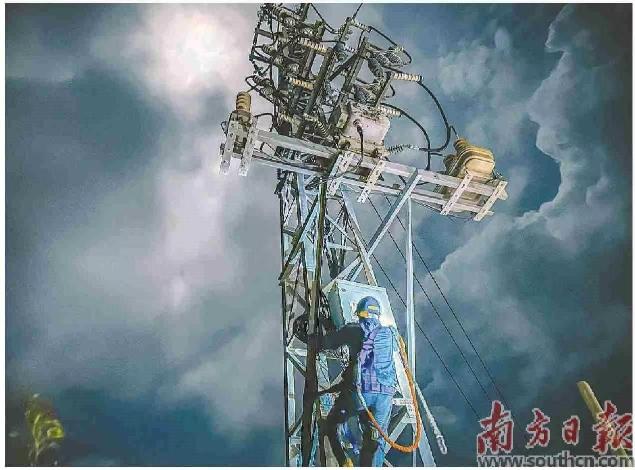 6日晚,南方电网广东湛江雷州供电局附城供电所开展合闸送电操作,争分夺秒为用户复电。林水描 摄