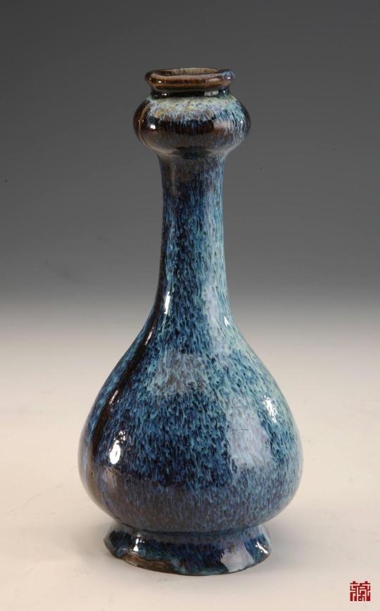 明石湾窑翠毛釉蒜头瓶 广东省博物馆藏