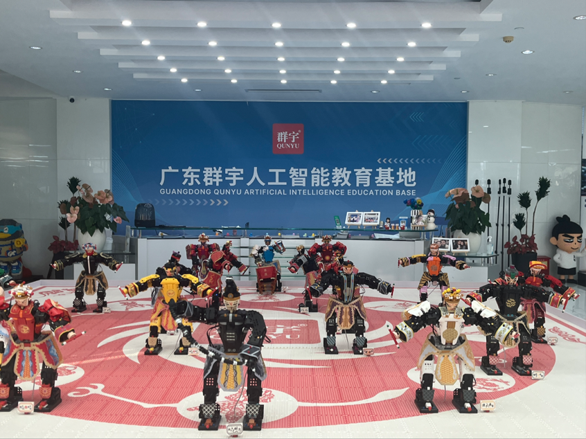 在广东群宇互动科技有限公司,一群“英歌舞机器人”正随着鼓点起舞。这些以《水浒传》人物为原型的机器人,脸谱、戏服、道具皆由积木拼成,却能在AI驱动下完成复杂动作。